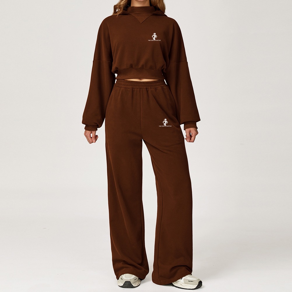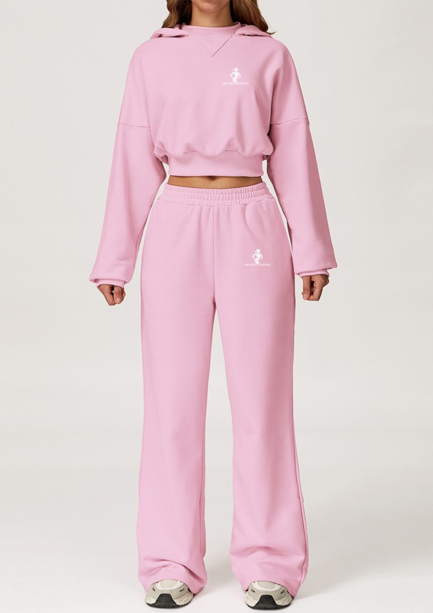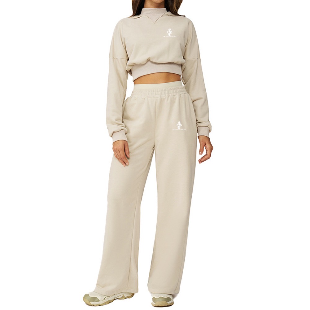 The cropped sweatshirt sits perfectly at the waist, giving you a stylish shape without feeling tight or restrictive. It pairs effortlessly with the joggers for a balanced, modern fit.